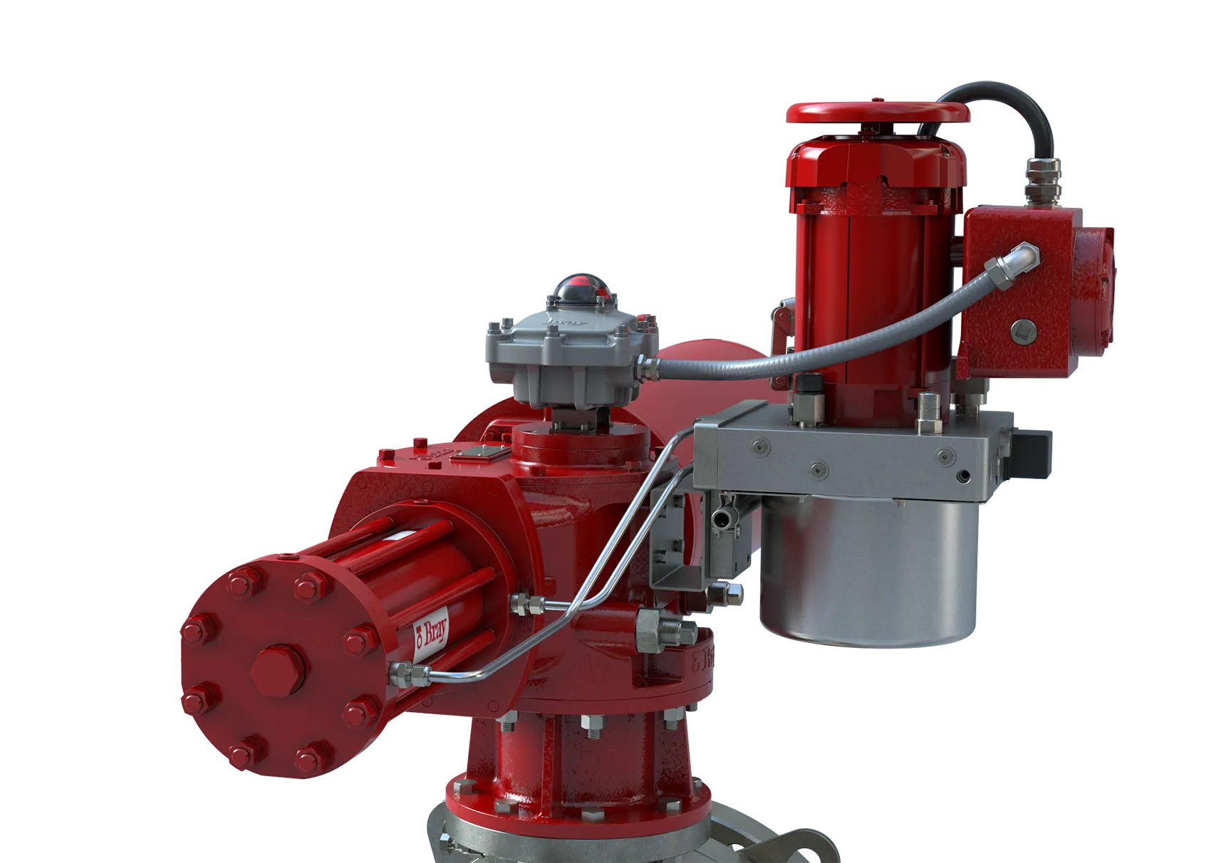 Bray offers a state of the art modular designed self contained electro-hydraulic actuator, fully configurable to meet a wide range of valve services and applications. The actuator is optimized for direct mounting on Bray valves but also easily retrofits to a valve of your choice. The electro-hydraulic actuator comes with an efficient self-contained hydraulic power unit that can either be mounted directly onto the valve actuator body or supplied with its own floor stand to power a single or multiple hydraulic valve cylinders. The hydraulic power unit can operate with a flexible range of power options including a solar charged power pack for remote locations where the power supply choice is limited. Controlling a valve using hydraulic fluid offers several key advantages over using conventional pneumatic or electric gear operated actuators. These include high thrusts and torques, fast acting, failsafe using either a spring or stored energy accumulator, and the ability to precisely position a valve with accuracy and repeatability. The electro-hydraulic actuator utilizes a closed loop hydraulic pressure with zero exhaust emissions that are common with pneumatic and natural gas powered actuators. Operating range from -50°F (-46°C) to 212°F (+100°C) ensures they will operate in the coldest outdoor environments to the hottest process applications.