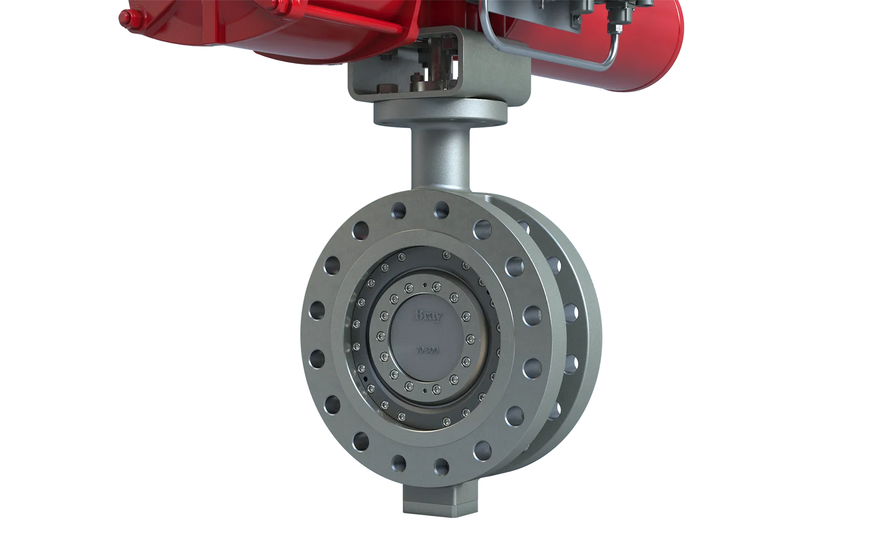 The Triple offset valve or triple eccentric valve features a stem that is offset on both the X (1) and Y (2) axis of the butterfly valves center-line. This produces a cam-like motion as the valve operates. The third offset (3) consists of an inclined conical profile machined into the valve sealing surface, allowing rotary engagement and disengagement of the seat and seal ring without interference. This triple offset eliminates all rubbing between the seat and seal ring during valve travel, reducing seat and seal wear and extending cycle life.Once the seat and seal ring are fully engaged, torque is applied in order to create a bi-directional, zero leak, metal-to-metal seal. For this reason, triple offset valves are often defined as "torque-seated" rather than "position-seated" as in the case of resilient or high-performance products.
